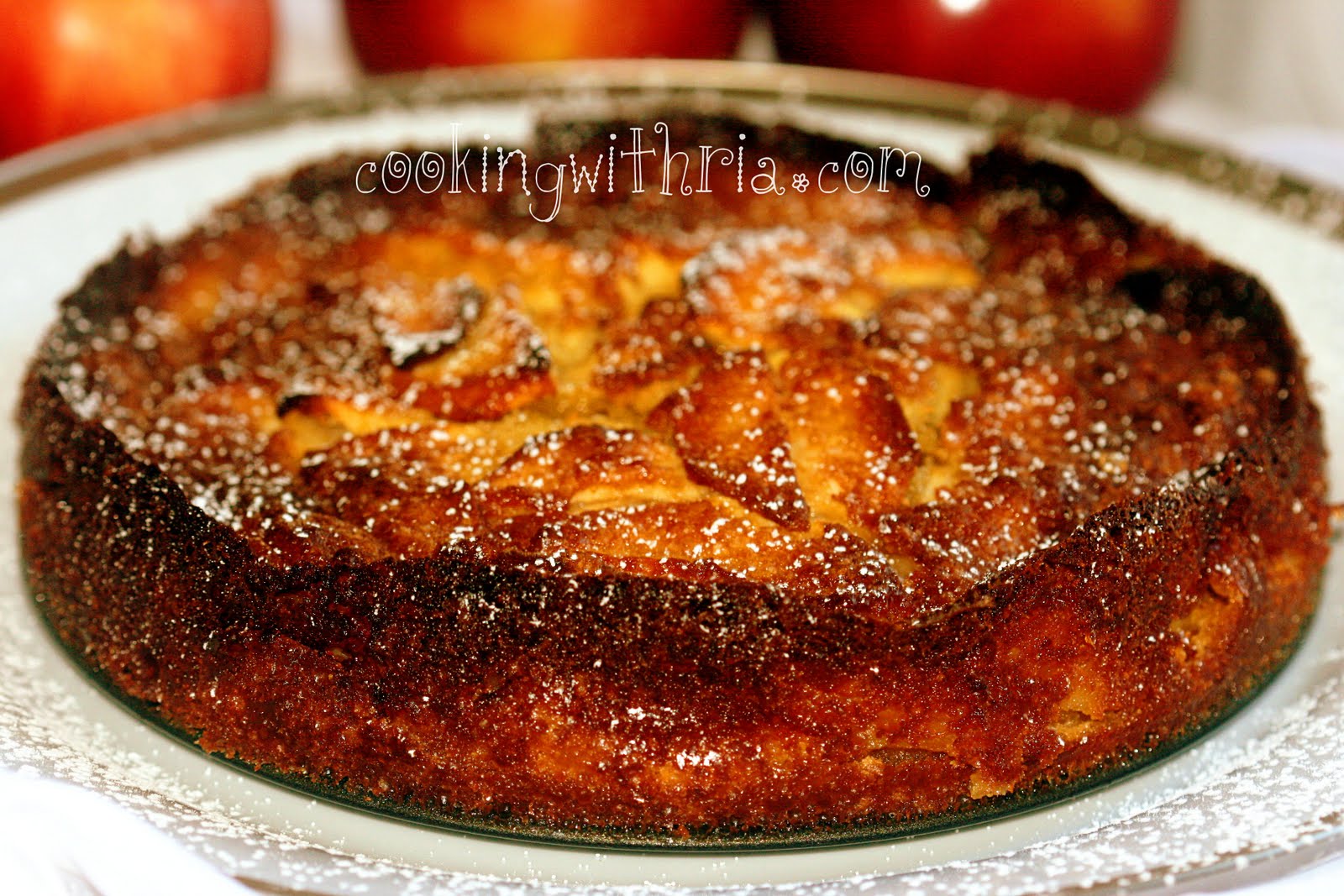 I used brown sugar instead of white, organic milk-eggs-butter and apples and placed the pan in the lowest rack for the entire cooking time. The second time I made the apple cake, that thing called guilt made me reduce the butter (4 Tbls) and sugar (3/4 C), but it was still delicious! If you like the words easy and delicious, then this is the recipe for you!!!!