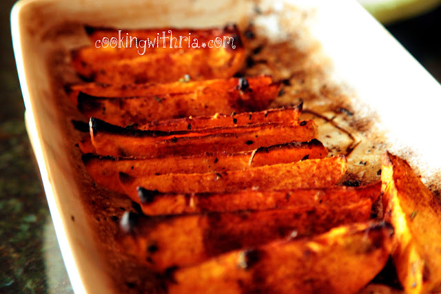 If you would like a variation to the regular sweet potato fries or oven sweet potato fries….or maybe you are looking for a healthy “comfort food” to snack on……or a new side dish to serve alongside your Thanksgiving, Christmas, weeknight or weekend dinner, here is a recipe for you!