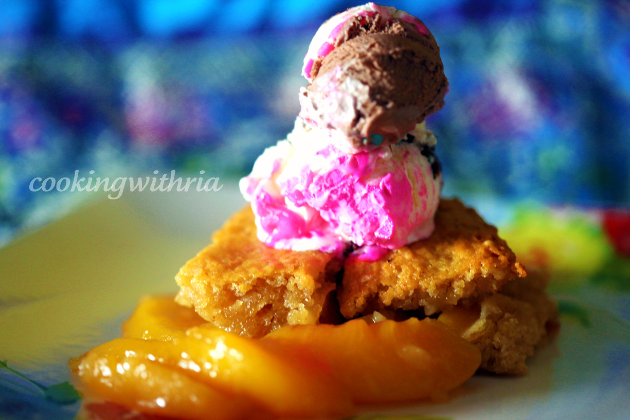 I have been making Paula Dean’s peach cobbler for years. One day I decided that it required a makeover with less butter and sugar. I know it’s an abomination, but occasionally I want to experience, “le plaisir sans la culpabilité!” When it comes to dessert, my first rule is to eat it only if I make it. My second rule is to still eat it even if I didn’t make it (homemade only though). Ok, I admit…that’s screwy..