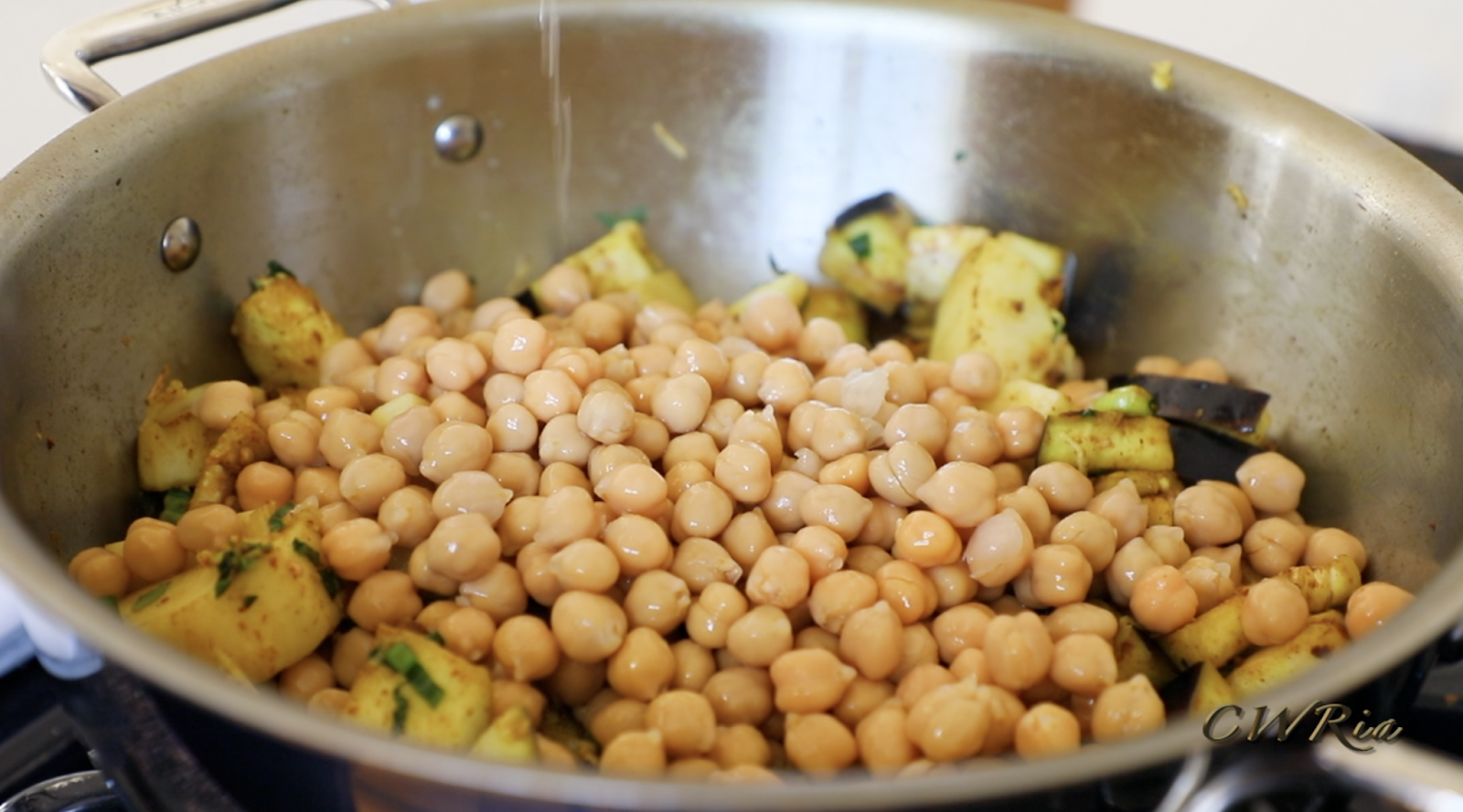 Curry Baigan and Aloo with Chickpeas Recipe