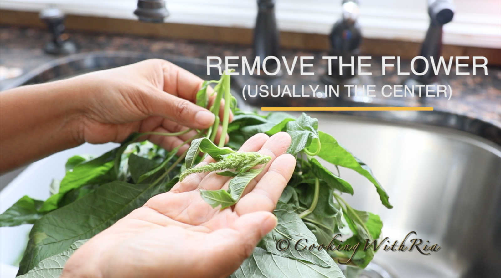 - 1 lb frozen fresh Jamaican Callaloo thick stems and flowers removed, chopped,