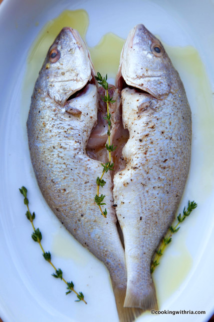 - 4-5 whole small red snappers about 2 pounds (or substitute with Parrot, croaker, porgies, or kingfish)
