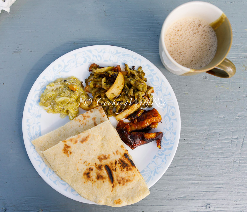 The radio would be playing soft Indian music in the background as the caraille sizzled in the pan, filling the kitchen with the scent of garlic and onions. Those quiet mornings, with sada roti and caraille on our plates, became cherished memories.