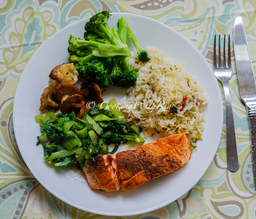 So, I made a second lunch: crisp-skinned salmon pan-fried in butter, tender broccoli and bok choy steamed until just bright, and shiitake mushrooms sautéed in garlic. The aroma in the kitchen was earthy and savory, with a clean freshness that felt like a reset. It was ready in less than 30 minutes, and it reminded me how simple ingredients, treated with care, can shine without complication.